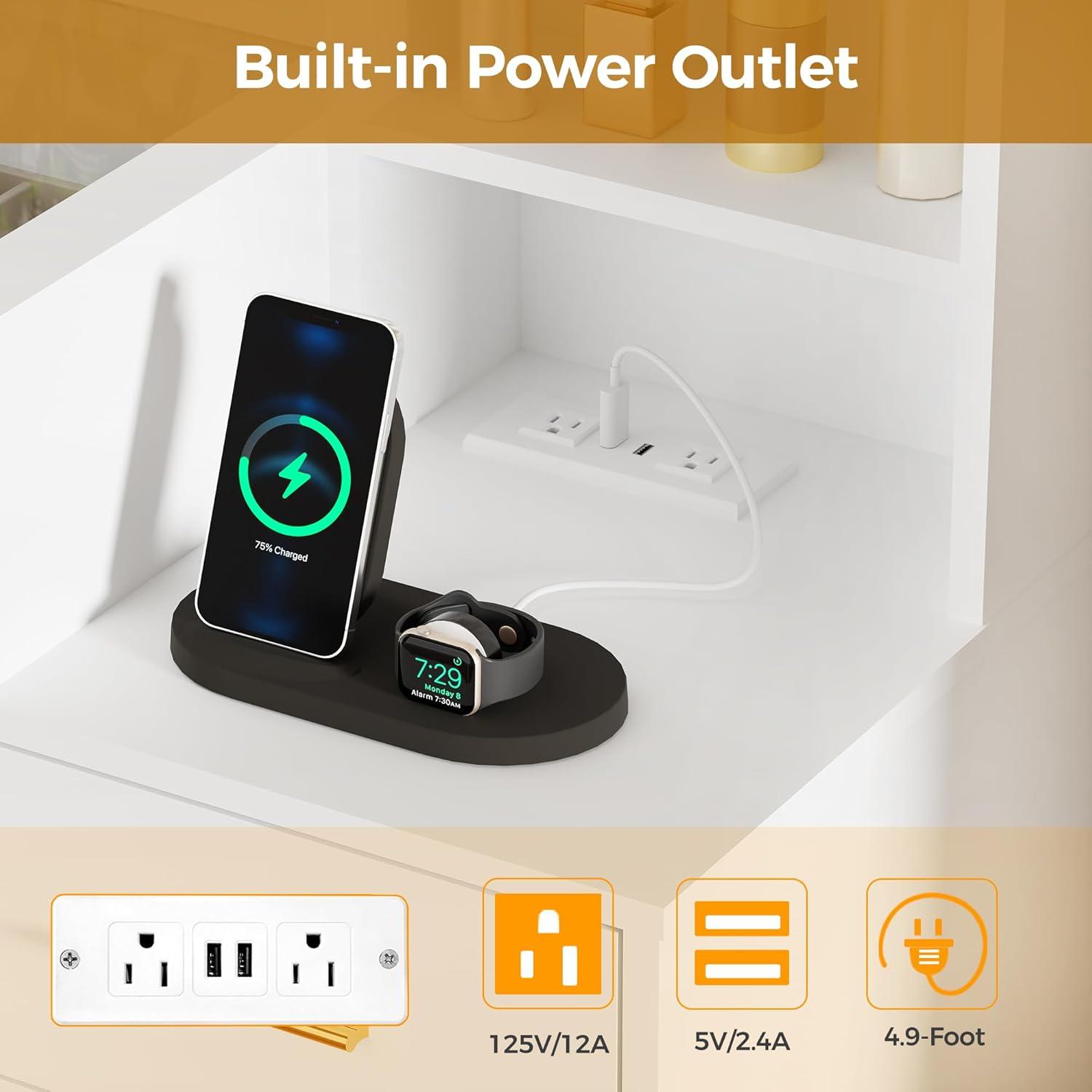 【BUILT-IN CHARGING STATION】 The vanity desk comes with a charging station that provides 2 standard plug sockets, 2 USB ports and a hair dryer rack, allowing you to charge your devices while applying makeup. In addition, this dressing table allows you to conveniently use items such as hair dryers and curling irons, making your makeup routine more convenient