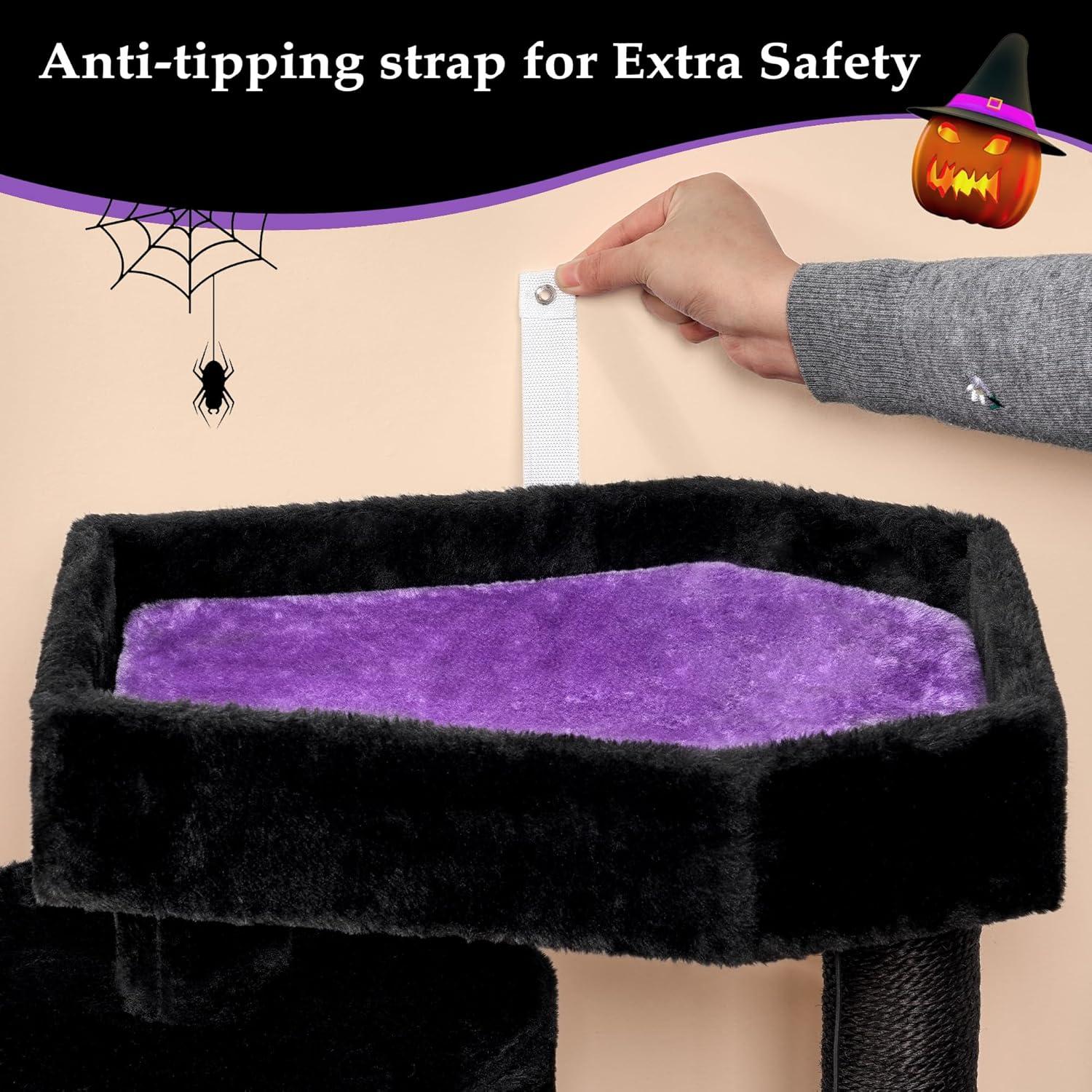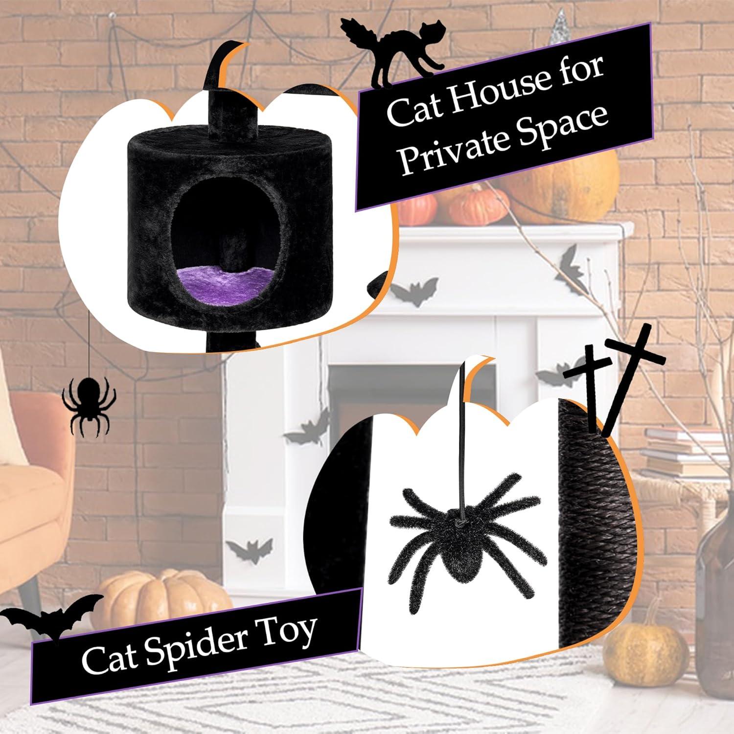 【Halloween Cat Home Decorations】: This Gothic cat tree tower incorporates elements of Halloween, such as spider toys to awaken hunting instincts, and a coffin bed for relaxing. The Halloween cat tree will also be a piece of spooky and stylish goth cat furniture for Halloween home decoration. And adds a unique charm and personality atmosphere to your space