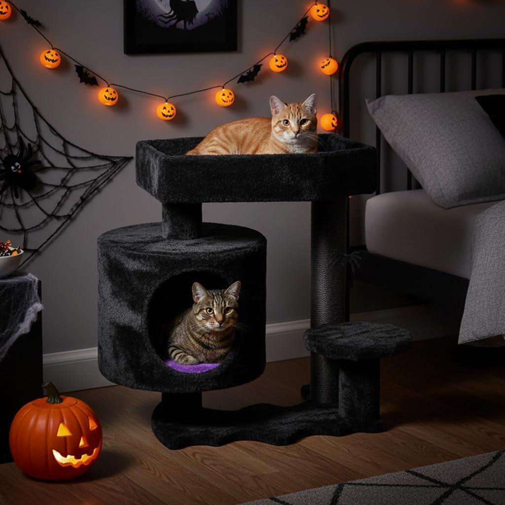 【Reasonable Size and Service】: Overall size 16.5″L x 21.7″H (42 x 55cm). The goth cat tree with its unique design will be ideal for your gothic cats and kittens