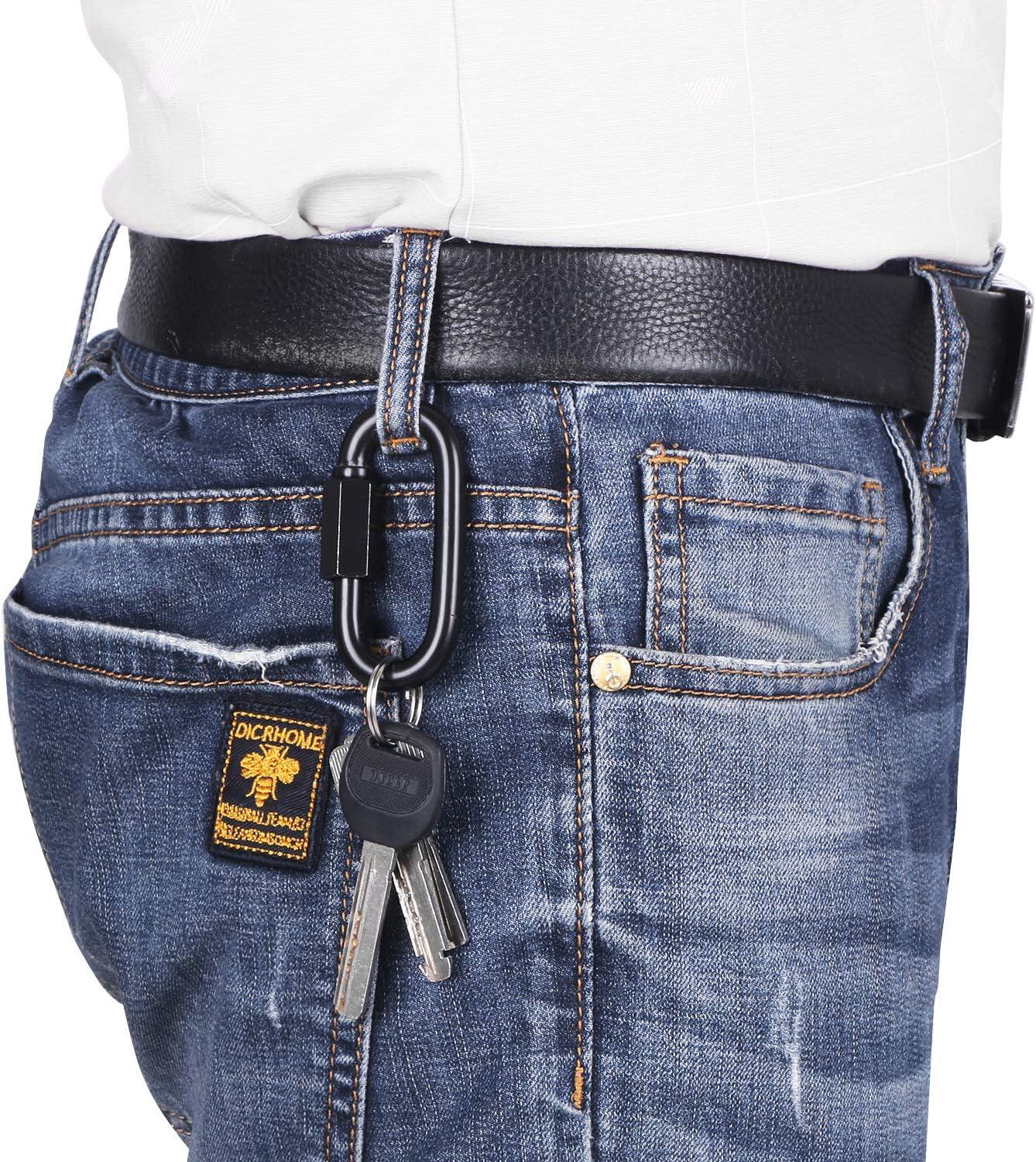 BEWISHOME 4 Pack Carabiner Hooks Hammock Locking Solid Metal D Clips with Heavy Duty 500LBS Screw Gate Hammock Locking,Quick Link for Outdoor Camping Hiking Traveling Backpacking Black & Silver HDK02(black)