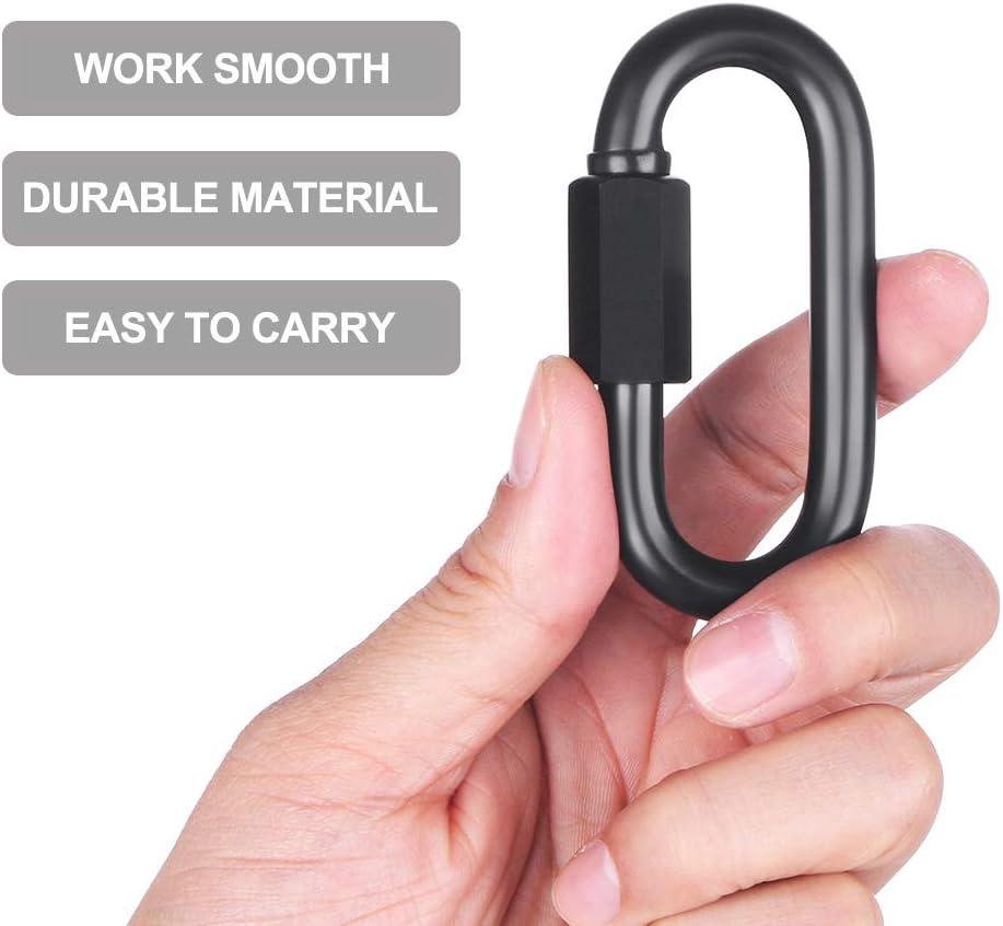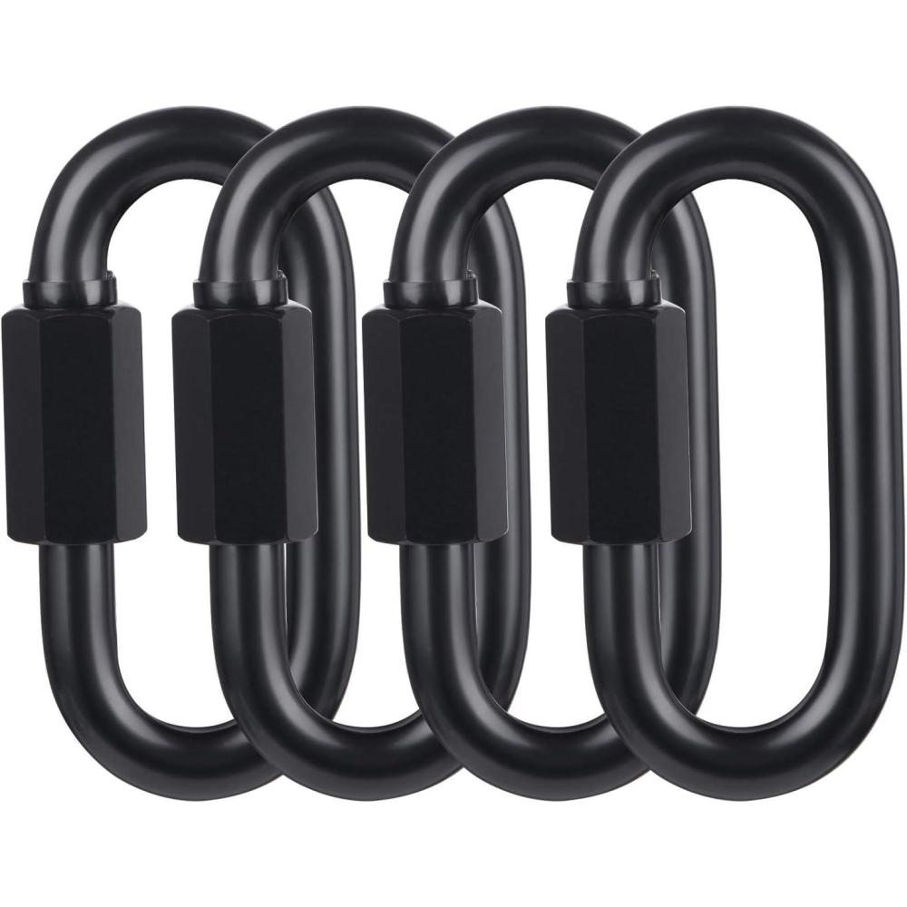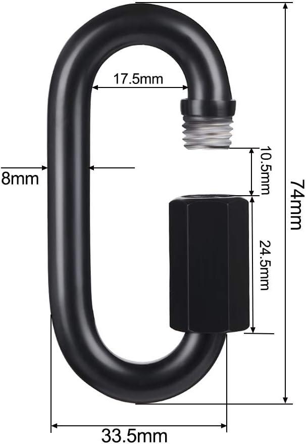 BEWISHOME D Shape Locking Carabiner, Black Quick Links Chain Links, Heavy Duty Durable Chain Connector,Black HDK03(Black-M8-4PACK)