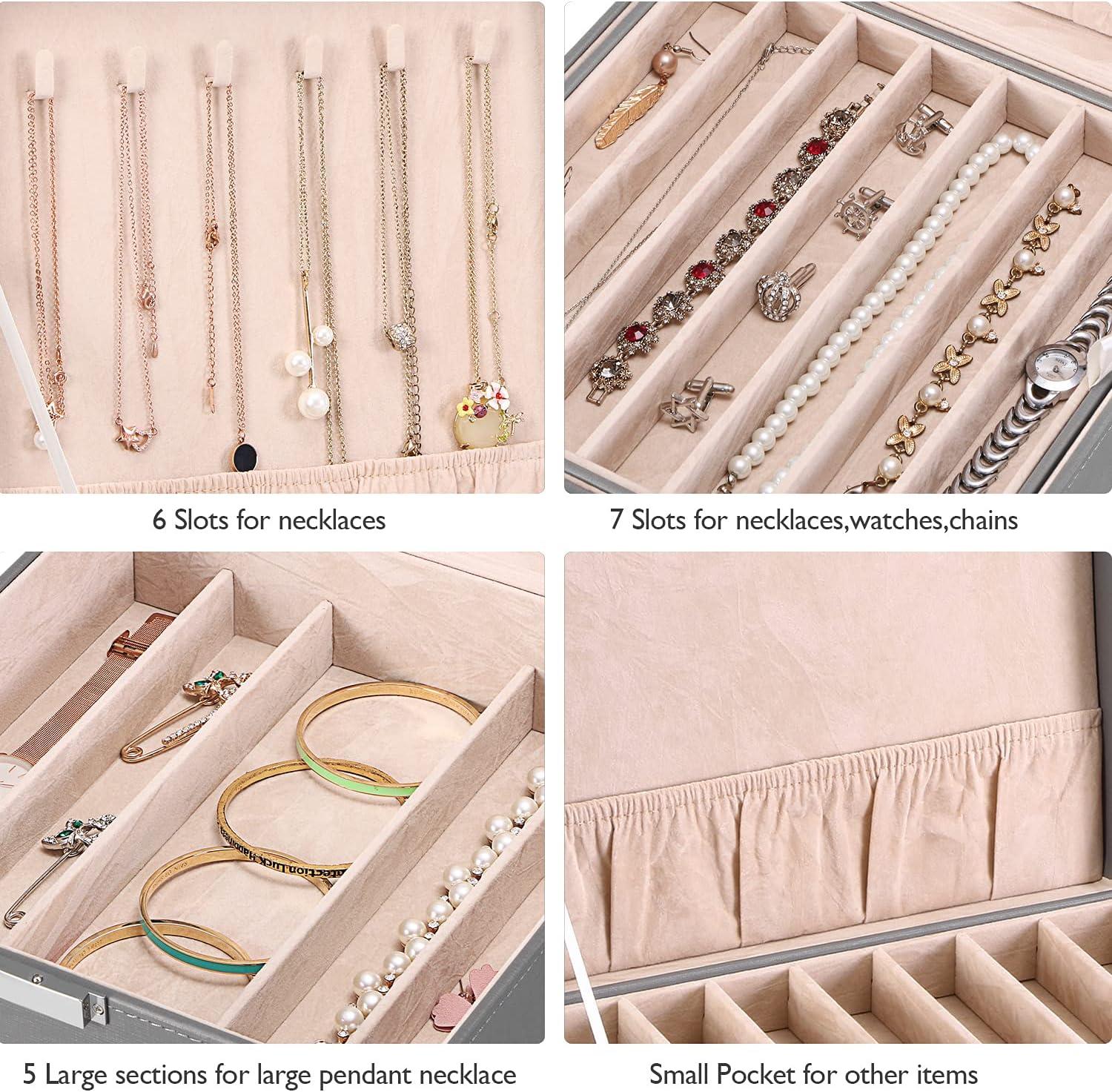 EXCELLENT CRAFT: High quality faux leather cover, high quality MDF, soft velvet lining to prevent your jewelry from scratching and being marred. The sleek jewelry holder box is beautiful, sturdy and durable. Keep your jewelry organized decently