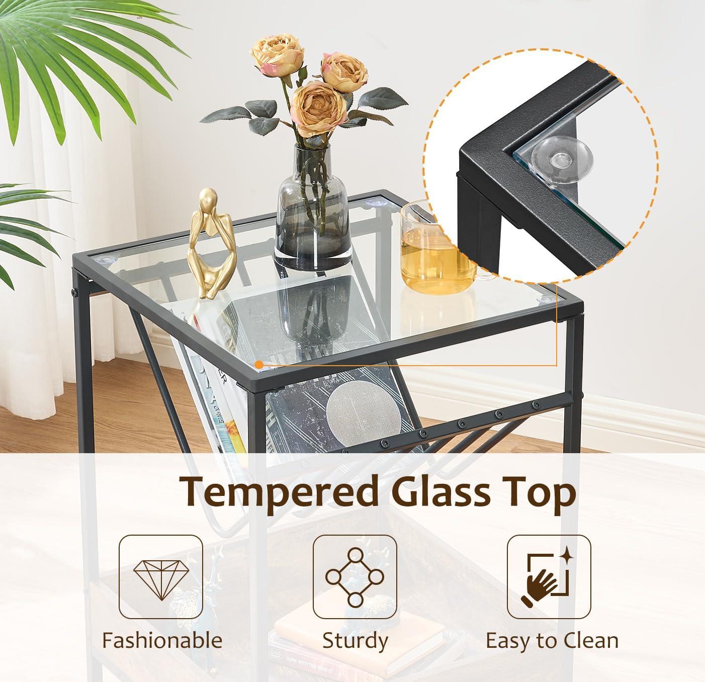 MODERN DESIGN: This modern night stand is made of glass tabletop and black metal frame which creates a modern and comfortable atmosphere. This small end table will match with your furniture in a simple style. Combining the practicality with decoration, the small side table will be an ideal piece of furniture for your home