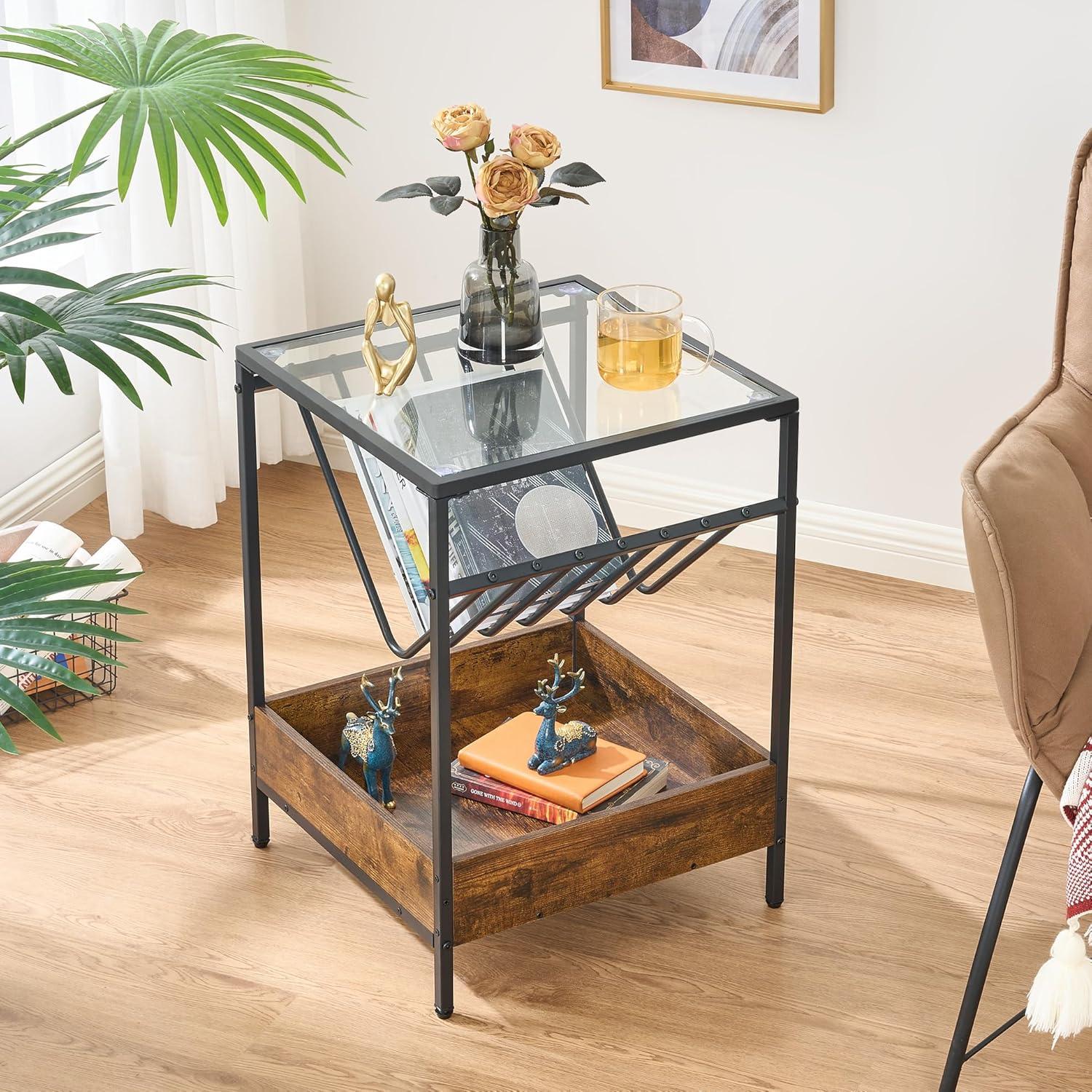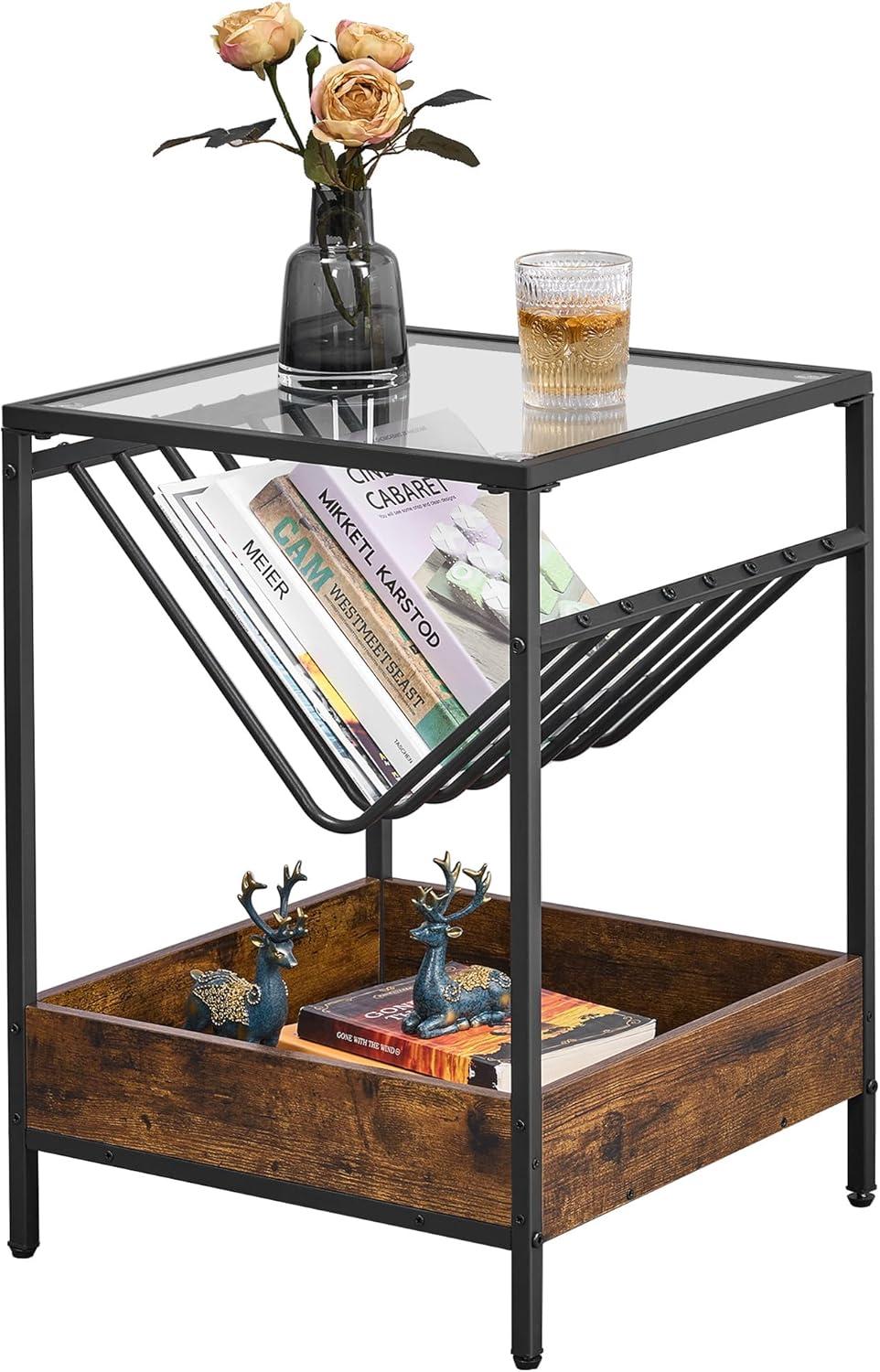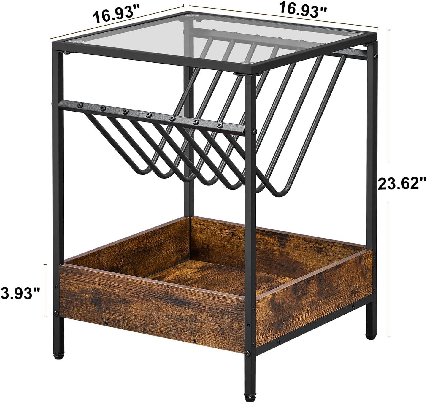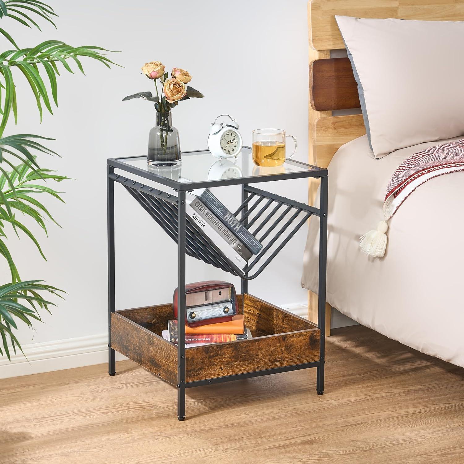 OPEN STORAGE SPACE: This tall nightstand comes with a metal shelf and an open storage on the bottom of the glass end table, which offers the most convenient and extra storage space. The metal rack in the middle can hold your favorite magazines, books and records, while the wooden tray on the bottom floor is very suitable for storing remote control, home decor and some snacks. You can keep all your favorites and essentials