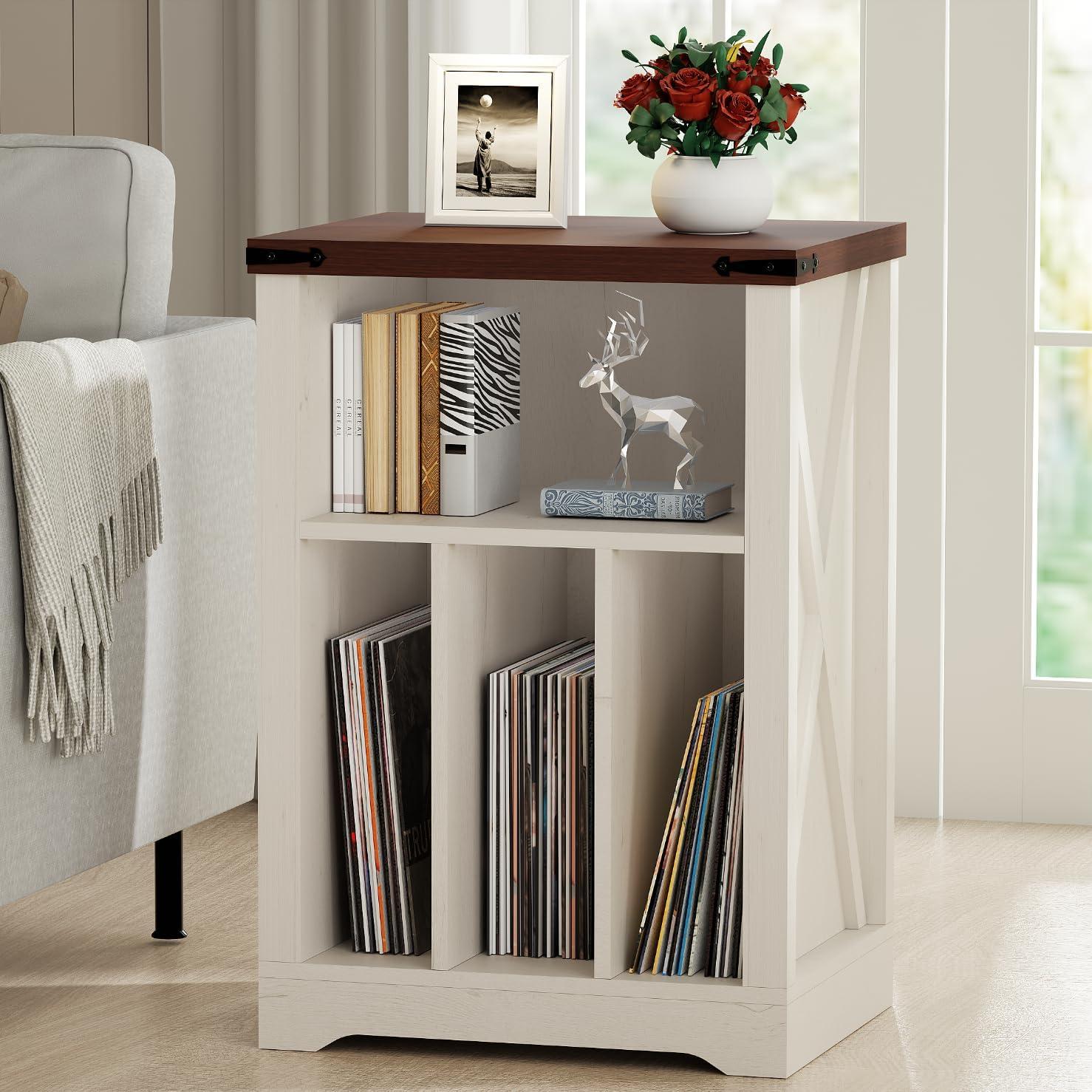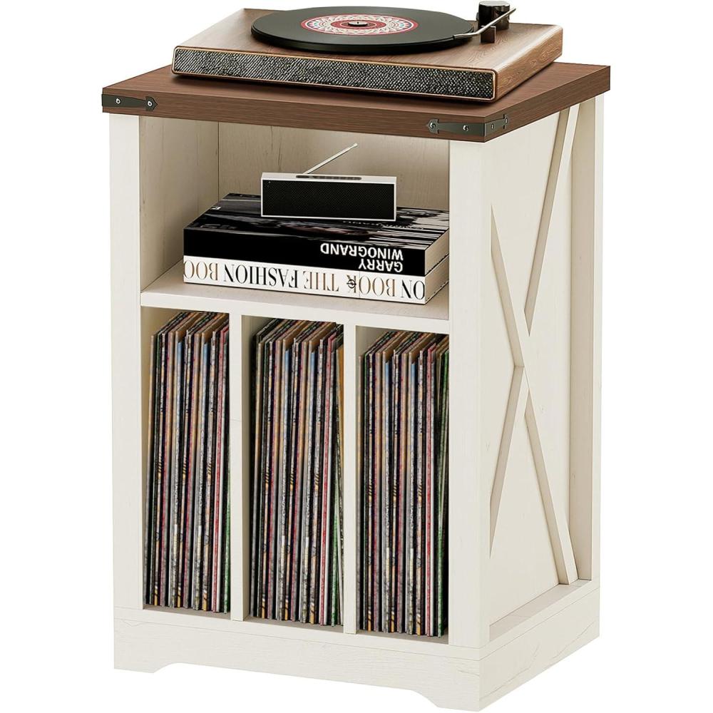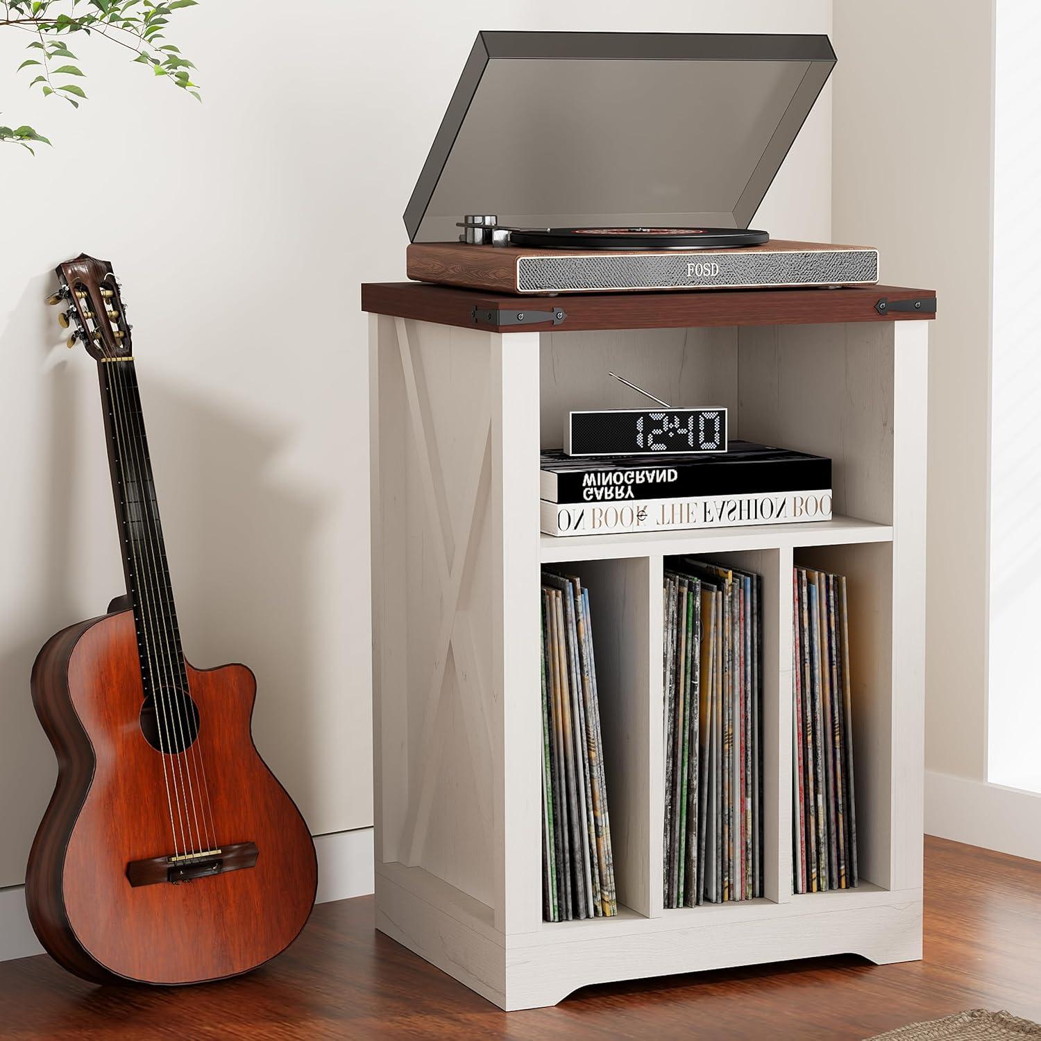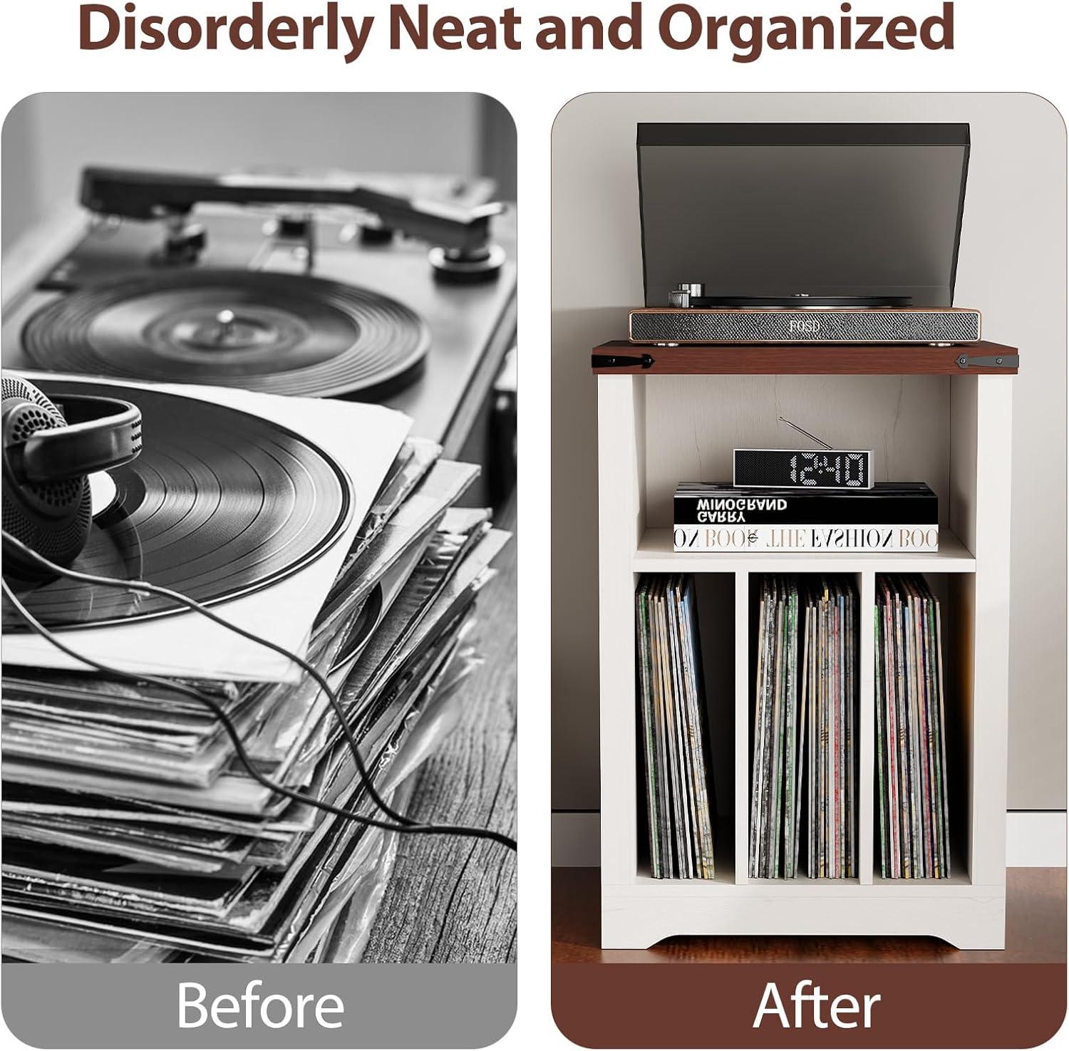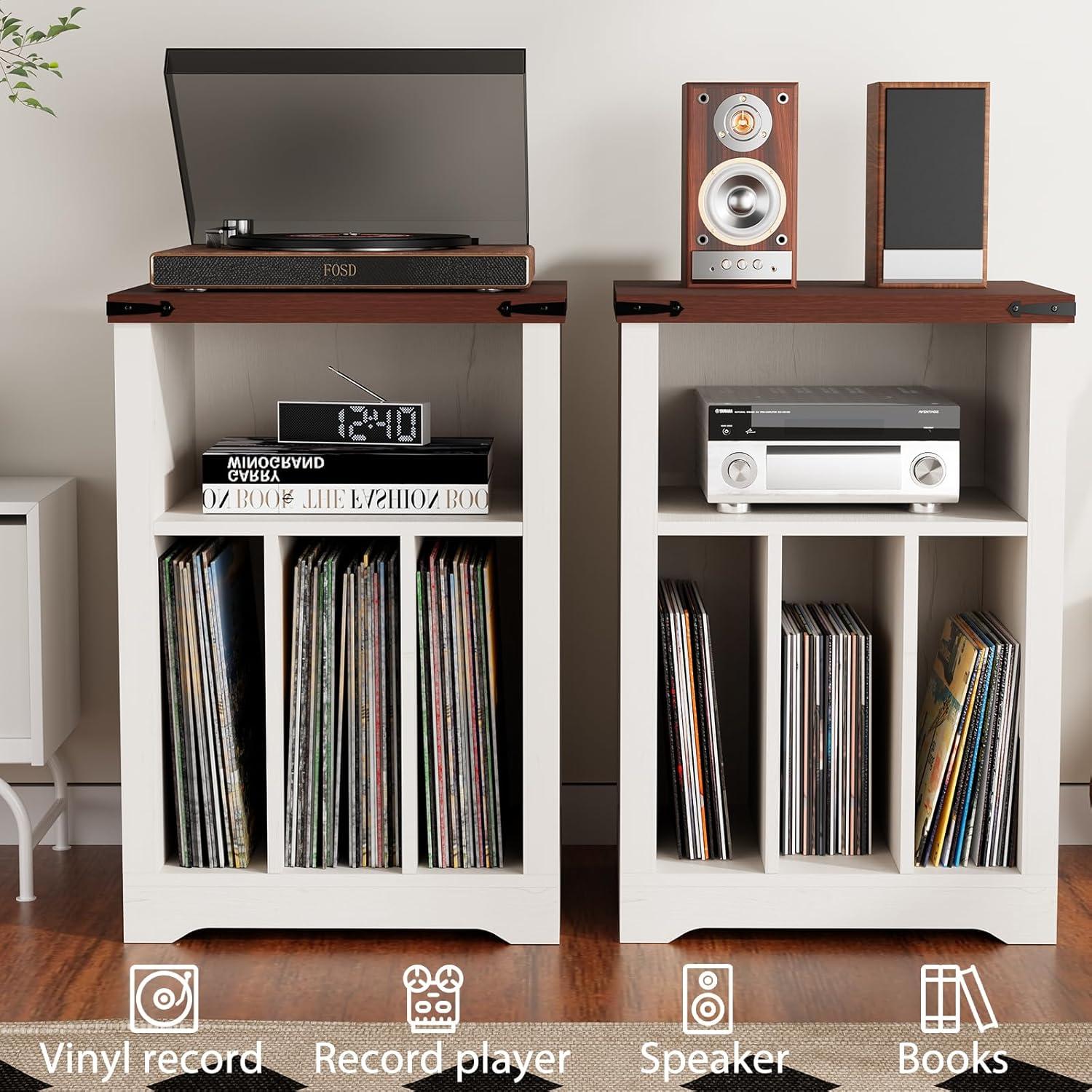 【Huge Record Player Stand】: This vinyl record storage measures 15.7‘D x 19.7’W x 28.3″H, making it suitable not only as a record player stand but also as a side table or coffee table. Its height is perfectly suited for use with sofas and beds, allowing you to relax in bed while enjoying a cup of coffee or placing other items.