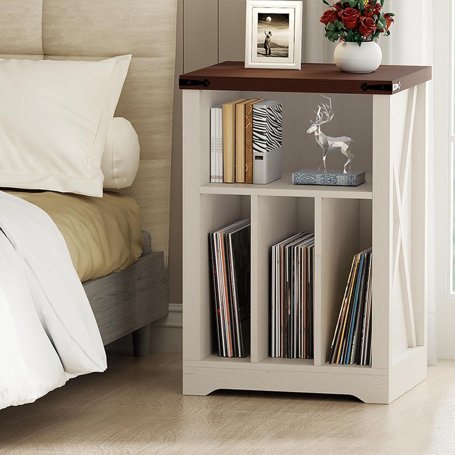【Retro Design and Durable Materials】: The mid-century style record player stand is made of wood particle board, which is extremely sturdy and durable. It combines an elegant white table body with a brown tabletop, preserving the retro texture while incorporating a modern industrial style, adding a touch of retro charm to your decor.