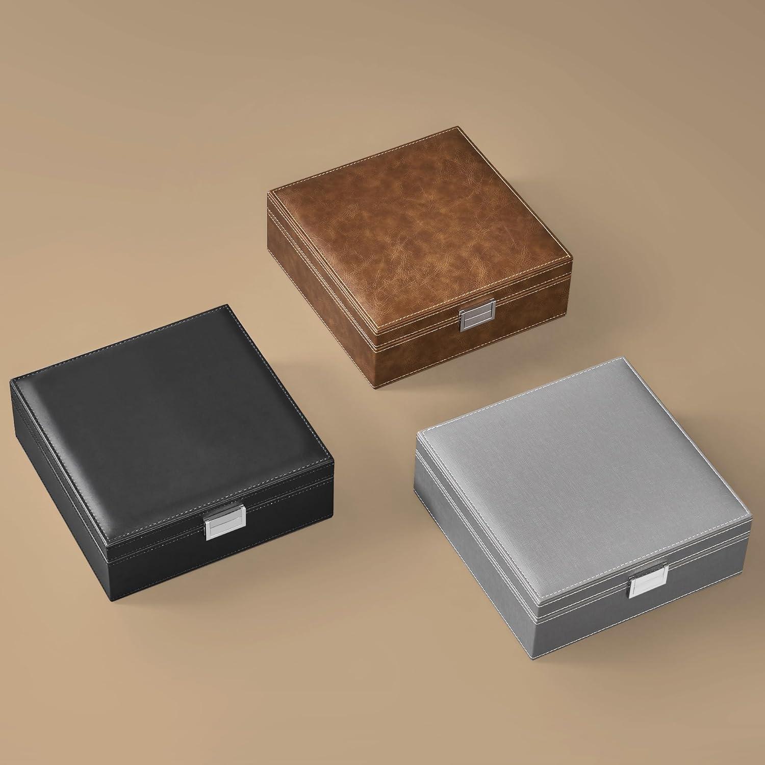 BEWISHOME Ring Organizer and Earring Box Holder – 11 Ring Slots, 25 Earring Compartments, Large Mirror, 2 Layers Jewelry Box Tray Cufflinks Storage for Girls Women Men, Black Faux Leather SSH21B(Brown)