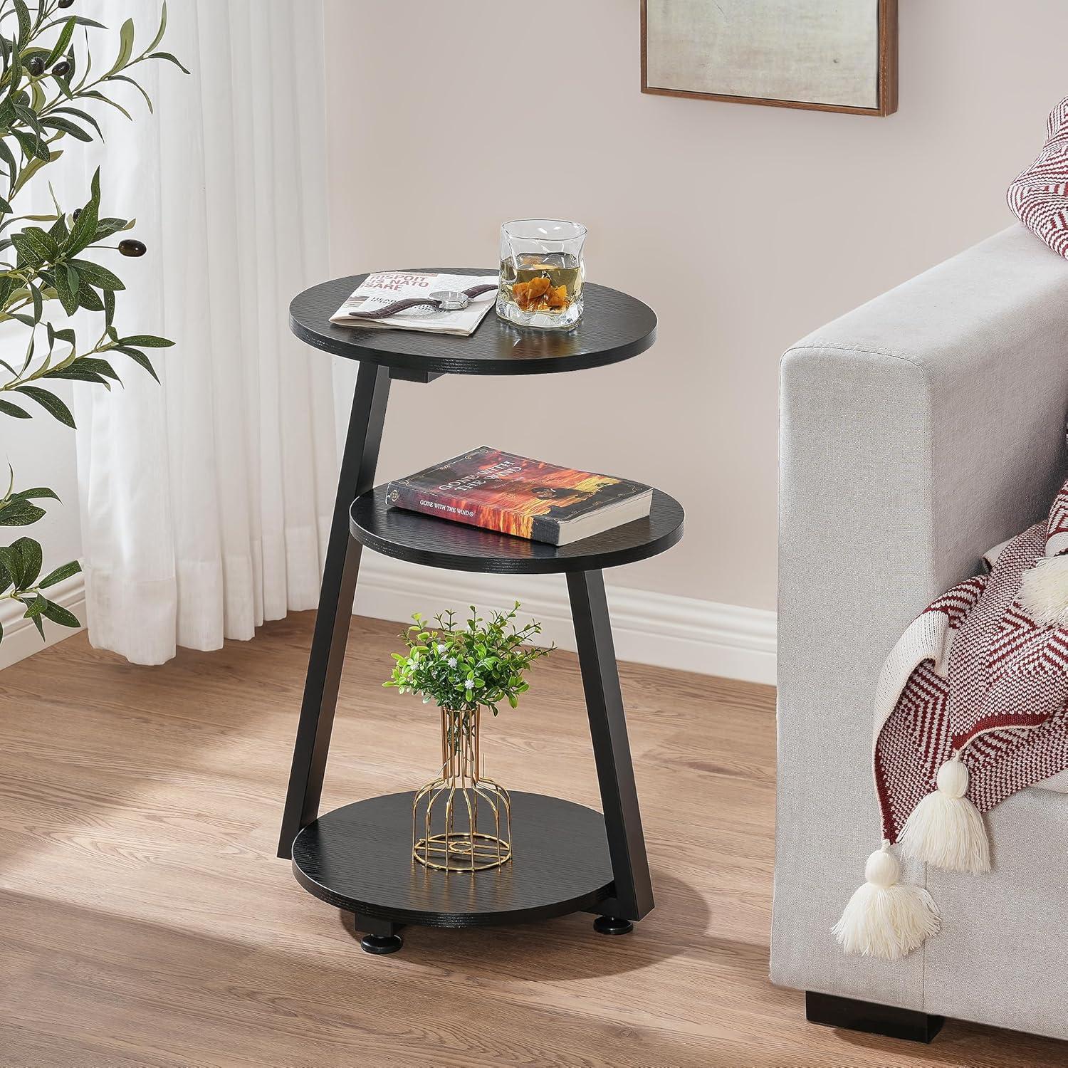 3 TIER SHELVES & MORE STORAGE: This small side table comes with 3 tier open shelves that offers the most convenient storage space for your favorite books, magazines and home decor. You can keep all your favorites and essentials