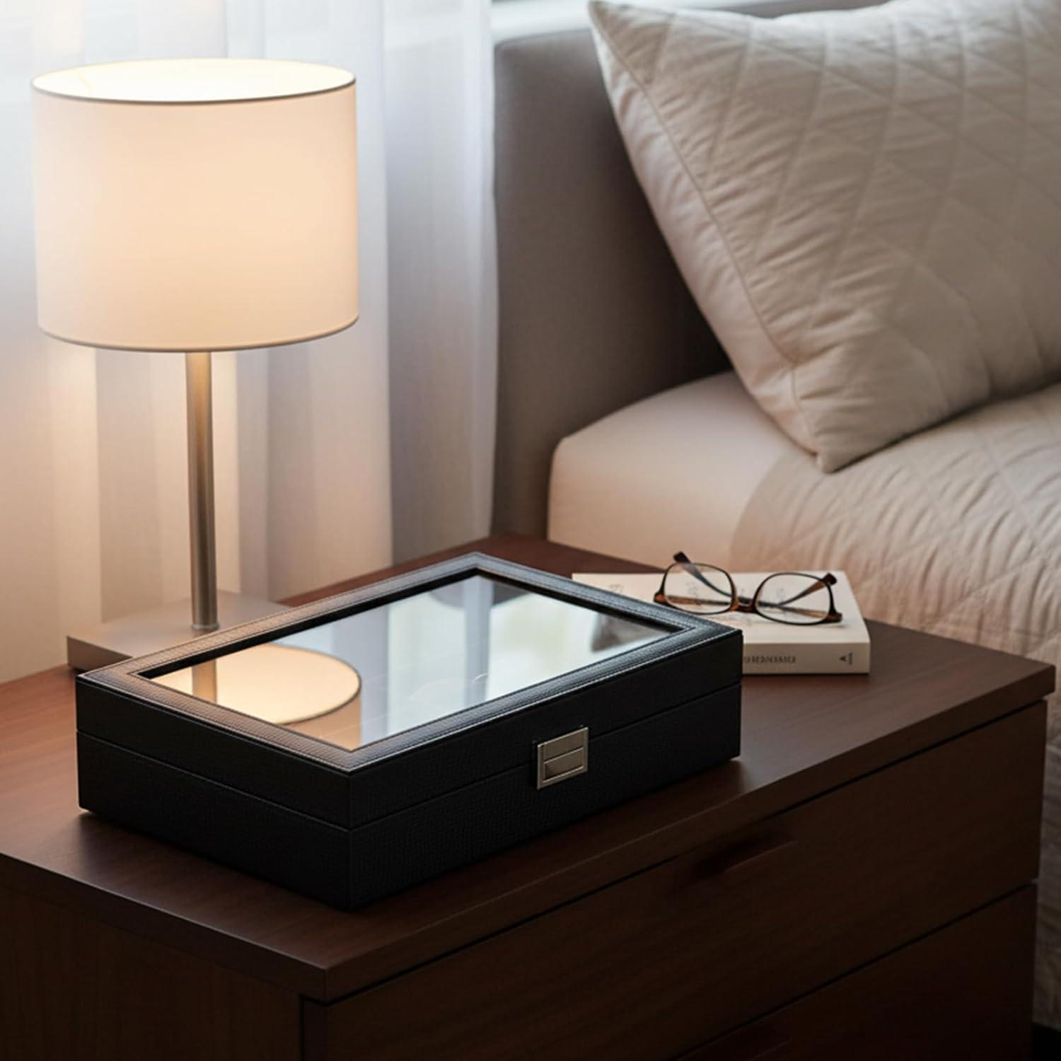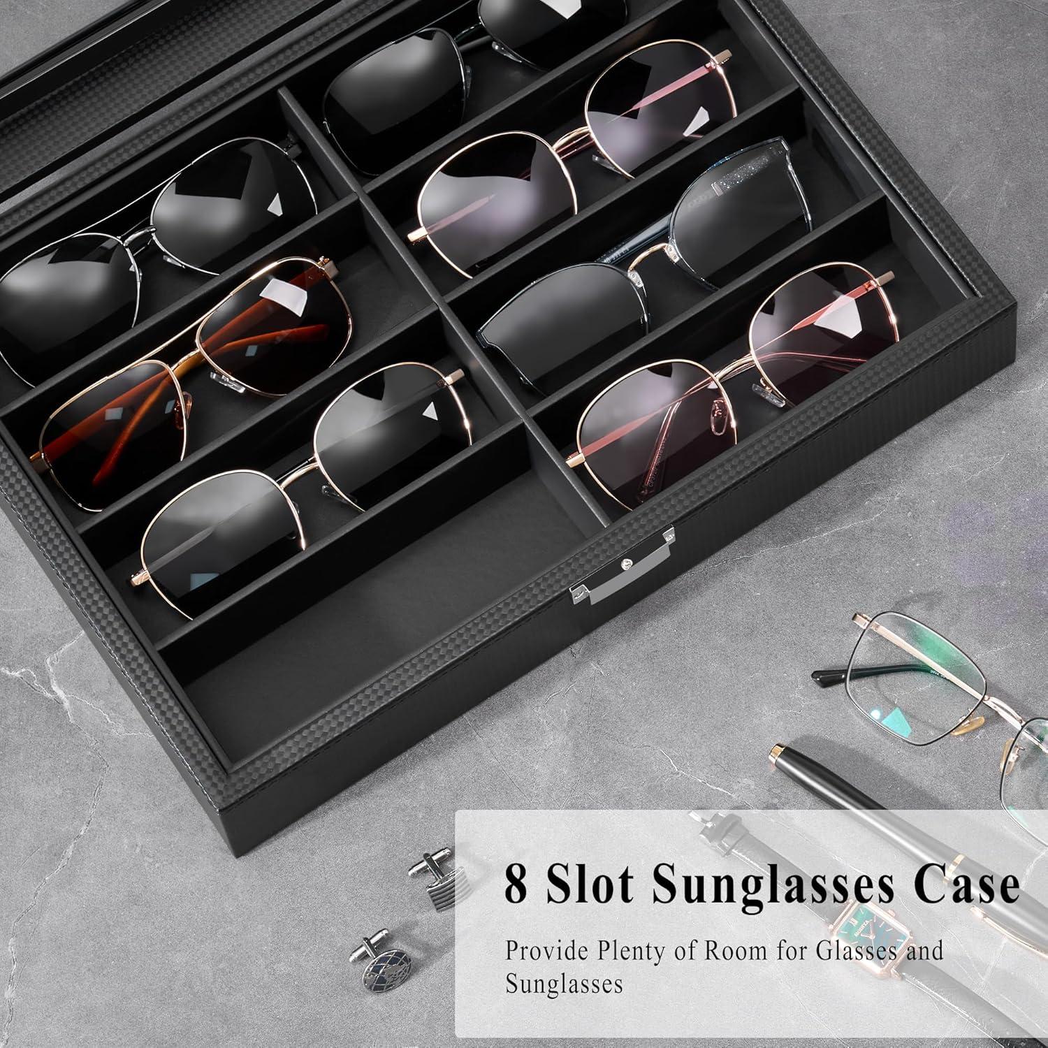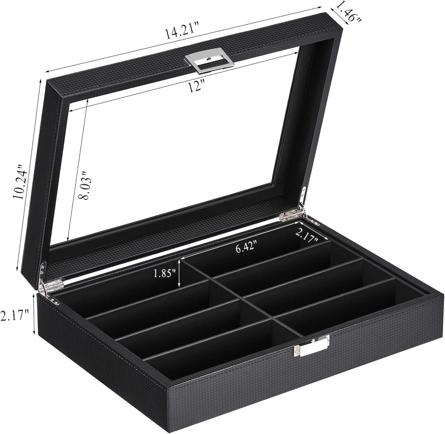 LARGE REAL GLASS LID: Why not showing your sunglasses to your family and friends? This eyeglasses organizer with large viewing window offers premium presentation and you can show off your watches with pride instead of hiding them in drawer